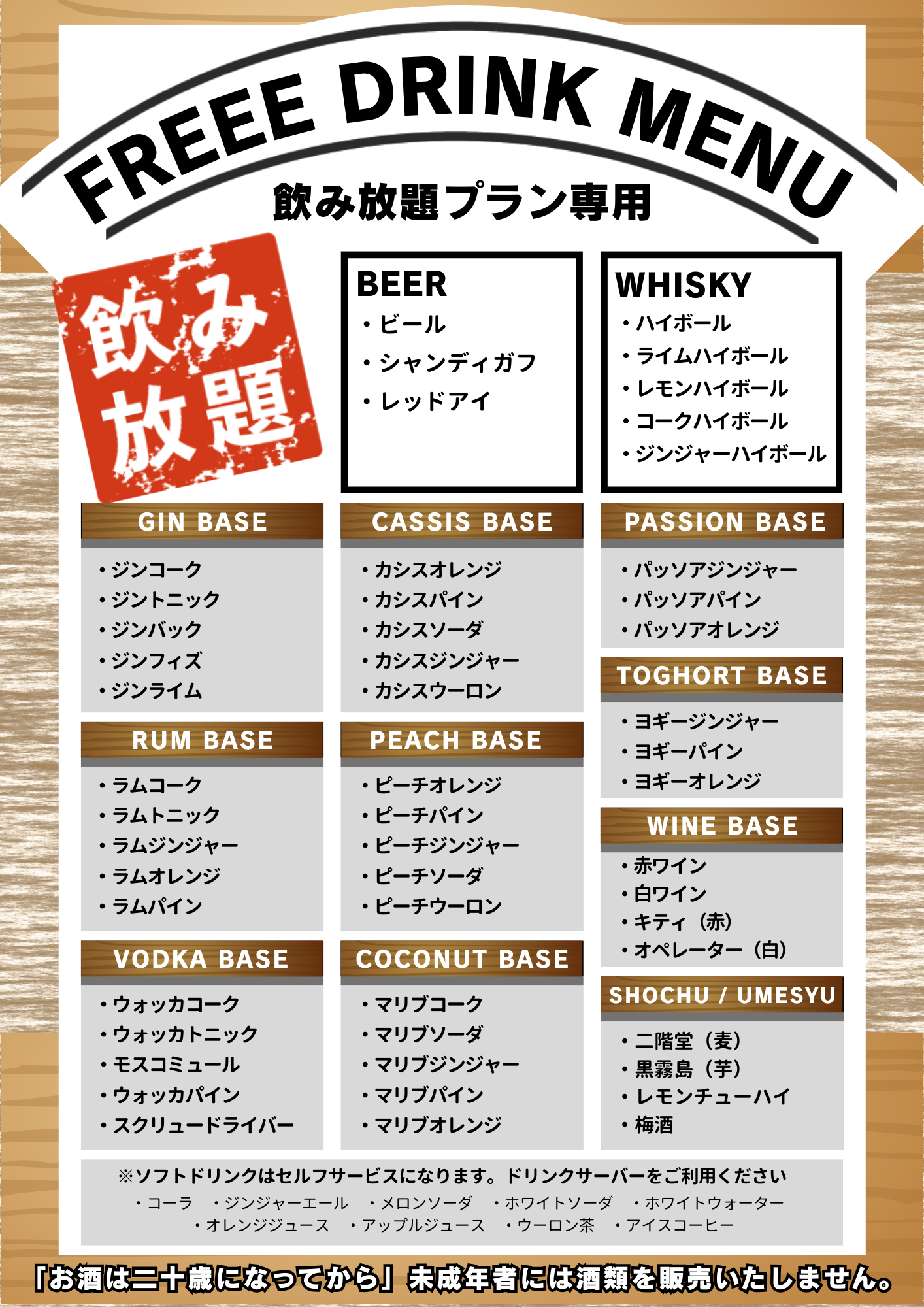 1.アルコール飲み放題プラン