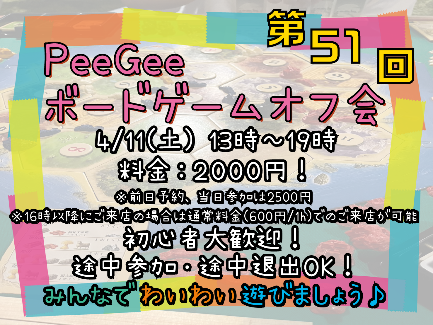 【2026年4月11(土)13時~19時 第51回ボードゲームオフ会開催】