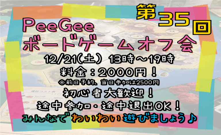 イベント 目次 最新記事 【第23回】シャドウバースオフライン大会 in PeeGee 2024年12月7日 目次 【第23回】シャドウバースオフライン大会 in PeeGee 2024/1… 続きを読む 【第22回】シャドウバースオフライン大会 in PeeGee 大会レポート 2024年12月7日 【第22回】シャドウバースオフライン大会 in PeeGee 大会レポート 20… 続きを読む 【第7回】ベイブレードX交流戦 アフターレポート&次回告知 2024年11月21日 目次 【第7回】ベイブレードX交流戦 アフターレポート&次回告知 今年も… 続きを読む 【2024年12月21日(土)13時~19時 第35回ボードゲームオフ会開催】 2024年11月21日 目次 第35回ボードゲームオフ会 皆さんこんにちは! 今回の第35回ボードゲーム… 続きを読む 第34回のボドゲ達 2024年11月21日 第34回ボードゲームオフ会に参加頂いた方々ありがとうございました!! たくさんの… 続きを読む 【PeeGeeシーシャ吸い放題週間開催11/25~11/29】 2024年11月21日 目次 【PeeGeeシーシャ吸い放題週間開催11/25~11/29】 開催期間:… 続きを読む « 前へ 1 … 9 10 11 12 13 … 38 次へ » B! 1 LINEへ送る
