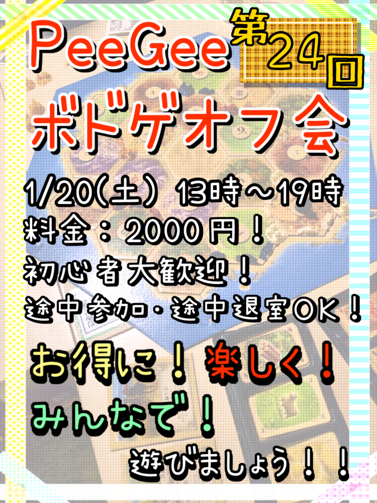 イベント 目次 最新記事 新春!おみくじキャンペーン 2024年1月2日 新春!おみくじキャンペーン みなさん、明けましておめでとうございます! 2024… 続きを読む 【2024年1月20日(土)13時~19時 第24回ボードゲームオフ会開催】 2023年12月27日 目次 【第24回ボードゲームオフ会開催】 皆さんこんにちは! 今回の第24回ボー… 続きを読む 【2024年1月13日(土)第12回シャドウバースオフライン大会 in PeeGee】 2023年12月25日 目次 【2024年1月13日(土)第12回シャドウバースオフライン大会 in P… 続きを読む PeeGeeの駄菓子コーナーが大幅リニューアル! 2023年12月24日 目次 PeeGeeの駄菓子コーナーが生まれ変わりました! 皆様おはこんばんにちは… 続きを読む ◆◆カレーライスやご飯に合う♪◆◆ ~オススメ駄菓子トッピング~ 2023年12月23日 目次 ◆◆カレーライスやご飯に合う♪◆◆ ~オススメ駄菓子トッピング~ PeeG… 続きを読む 【第11回】シャドウバースオフライン大会 in PeeGee 大会レポート 2023年12月13日 【第11回】シャドウバースオフライン大会 in PeeGee 大会レポート 20… 続きを読む « 前へ 1 … 24 25 26 27 28 … 38 次へ » B! 1 LINEへ送る