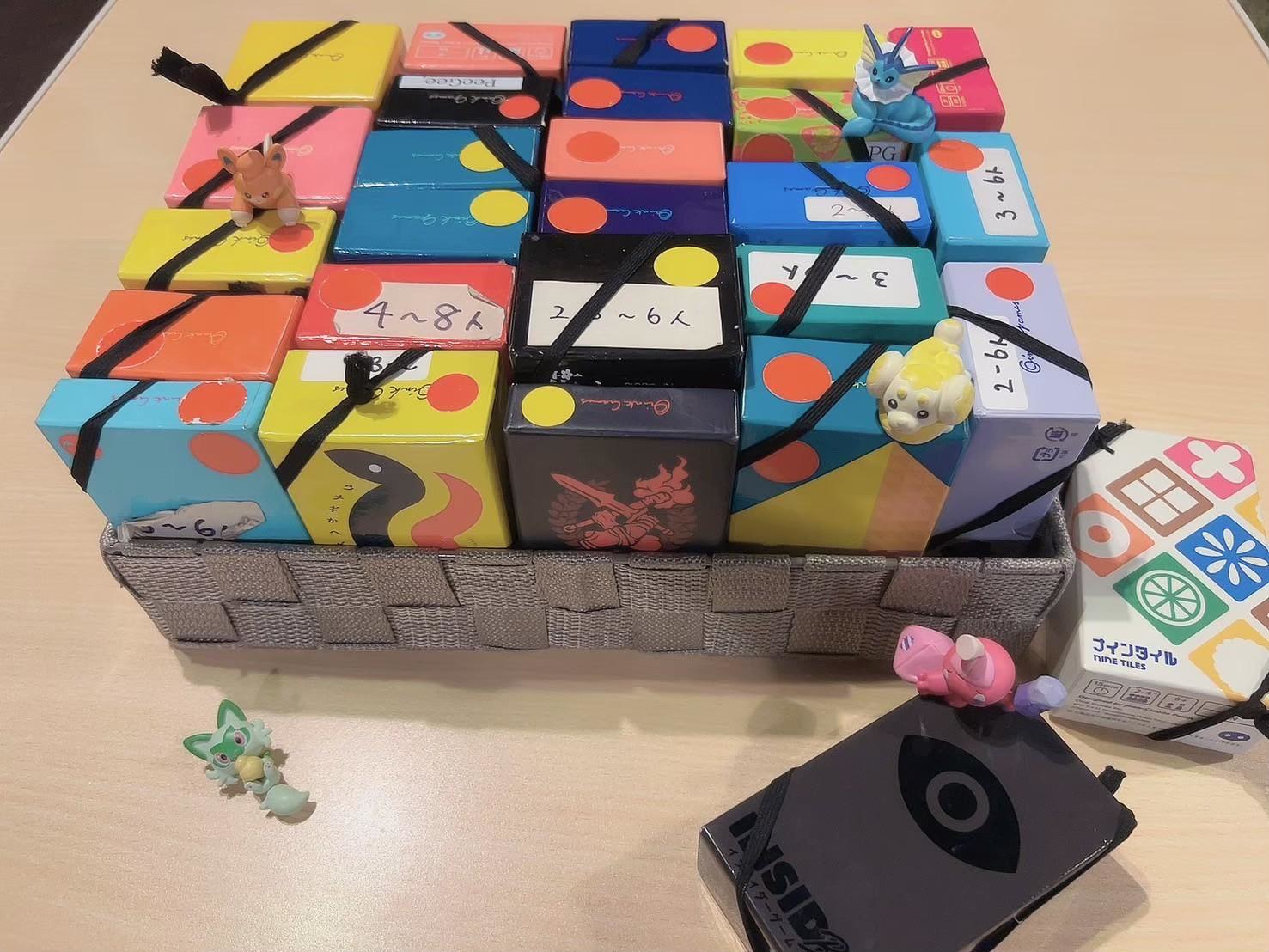 こちらのボードゲーム、『10秒のルール説明』がウリ。超絶簡単なルールで、こどもも大人もみんなたのしいです♩